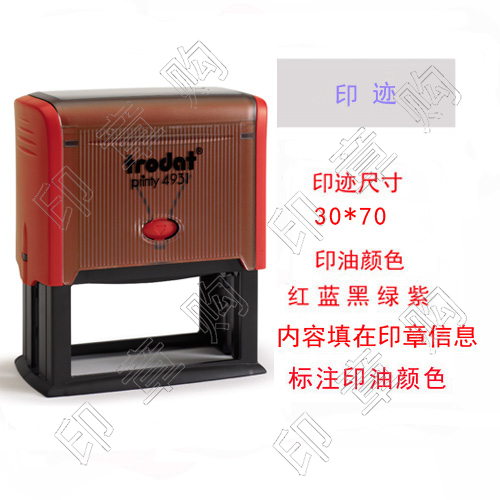 品牌:卓达规格:70 x 30mm优势:轻松盖印,印迹清晰,干净整洁,100,000次以上盖印寿命1. 使用方便——连续盖印,1次完成2. 印迹清晰——高精度,15年不退色3. 内置印台——方便注油;可更换印台4. 全景视窗——提高效率5. 精确盖印定位对准设计,防滑设计